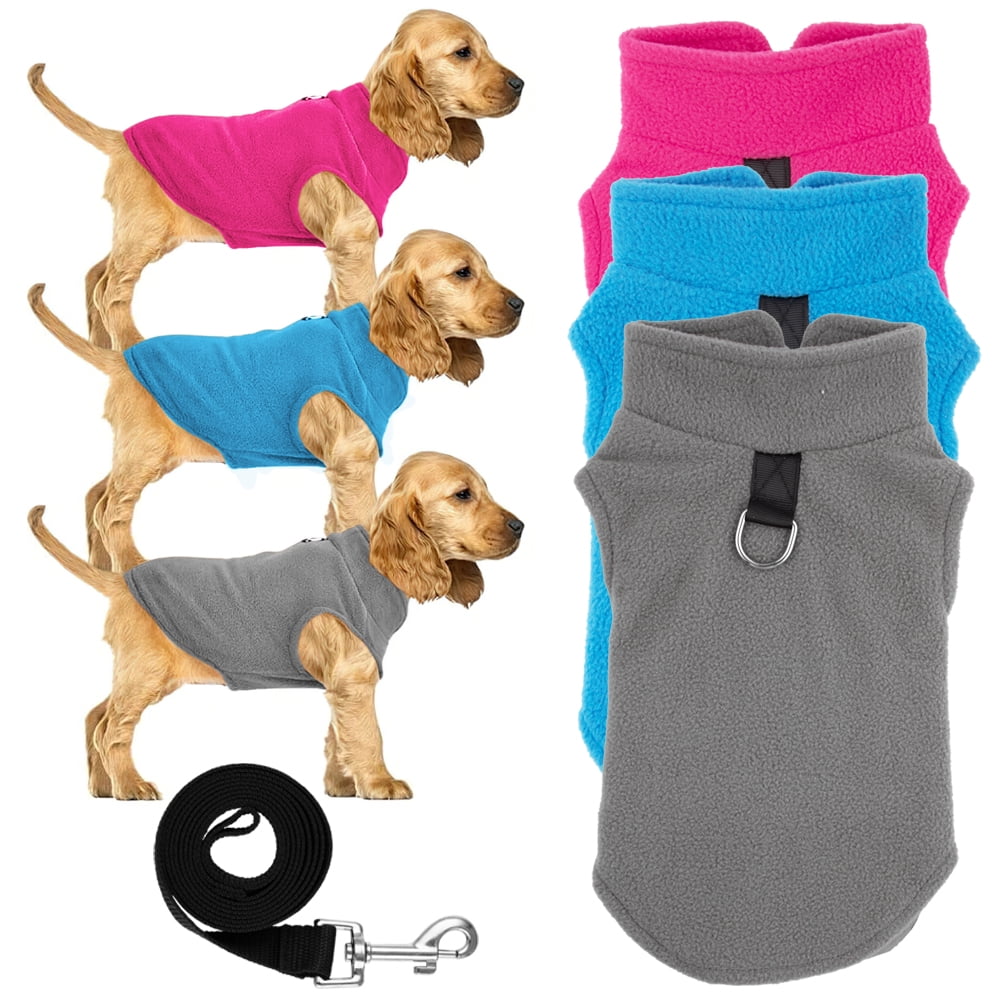 Kidlove 3pcs Pet Vest Set Solid Color Polar Fleece Warm Soft Coat Clothes With Leash Ring With 1 Leash Walmart Com