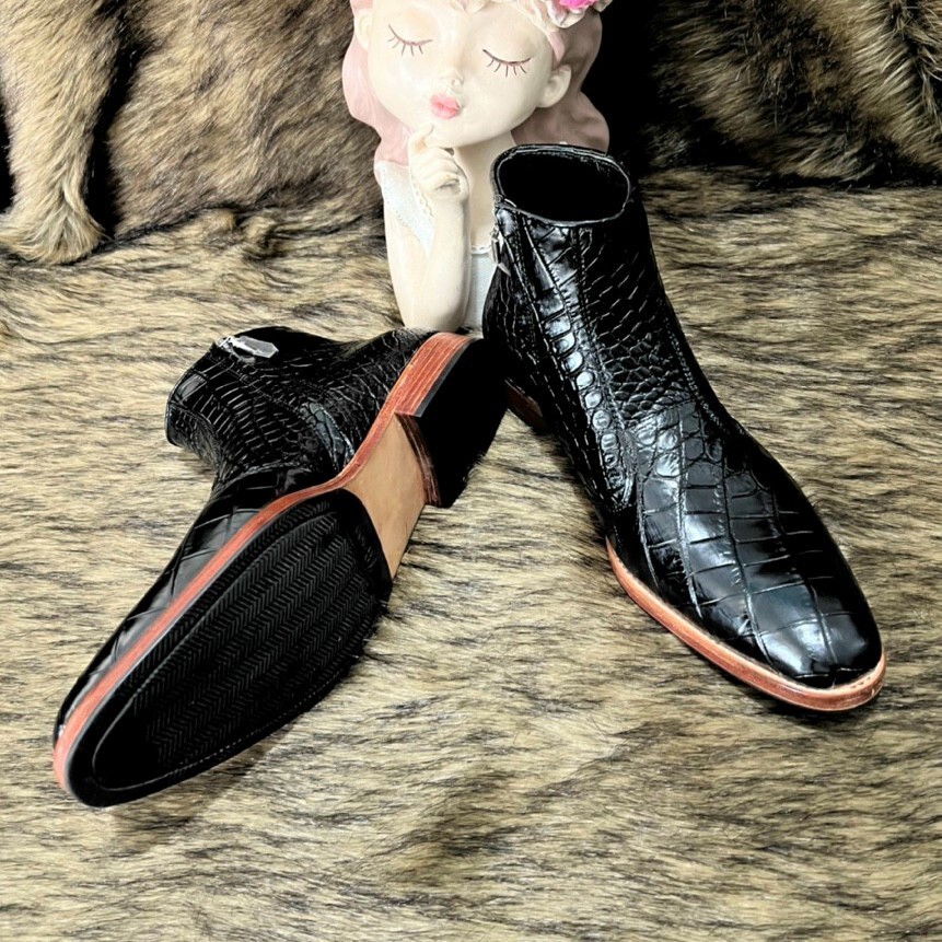 Black Mens Alligator Boots Us Size 13 Flat Luxury Dress Shoes Pointy Toe Pull On Ebay